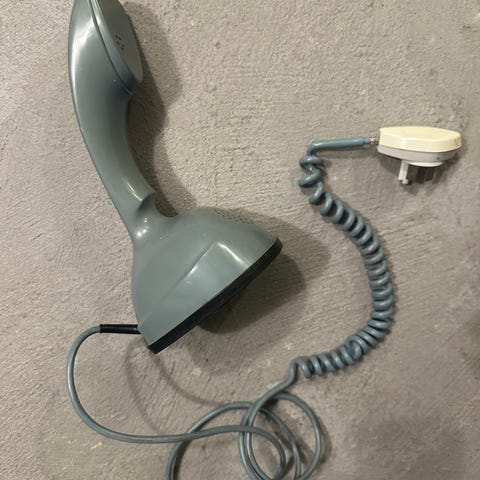 Telia Mino fast telefonlur i beige färg med sladd. Passar för fast telefonanslutning och har knappsats för uppringning.