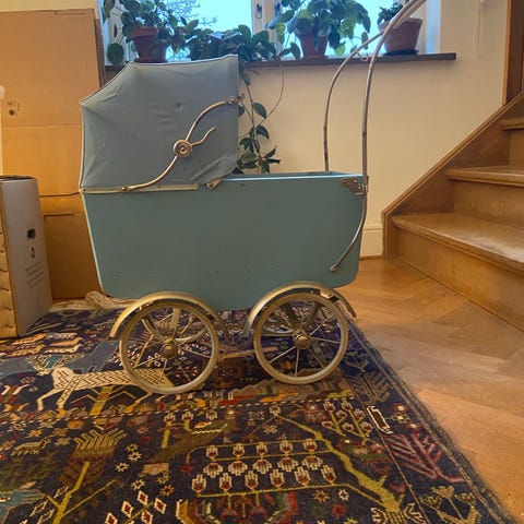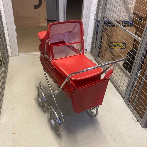 Jag säljer min dotters dockvagn, med docka och bilbarnsits som är i gott skick.