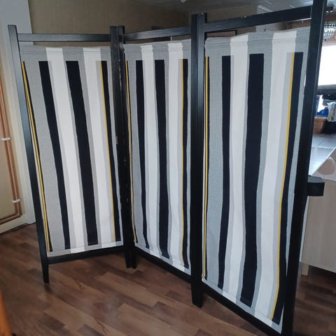 Har fyra sektioner insynsskydd/avdelare i mycket bra skick. Bilden visar två sektioner.Mått h 170 cm b 56cm. Benen till dom är oanvända.De få man sätta dit själv.Hämtas i Köping.Swish ej kontant