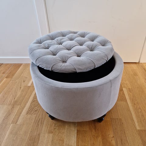 Sittpuff i ljusgrå sammet fr Nordiska Hem