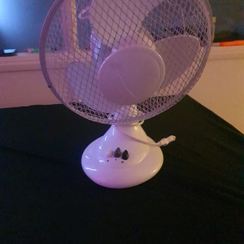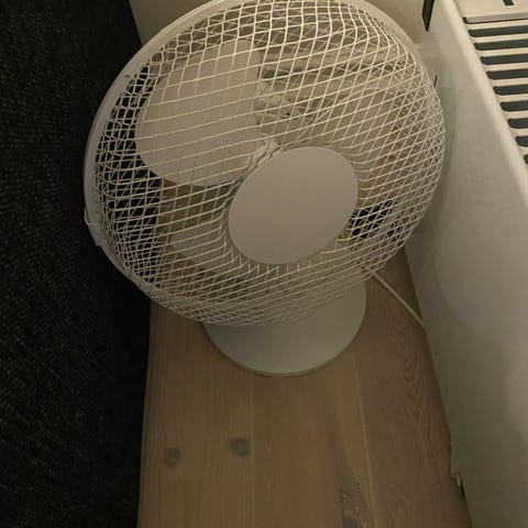 Bordsfläkt i metall för inomhus bruk. Märke Biltema. Den har två olika hastigheter som man kan växla mellan. Bruksanvisning finns. Hämtas i Tenhult.