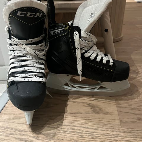 CCM Ishockeyskridskor i barnstorlek 30. Skridskorna är svarta med gröna snören och är avsedda för ishockey. Passar barn som behöver skridskor för sporten ishockey.
