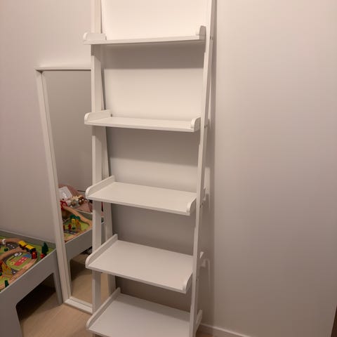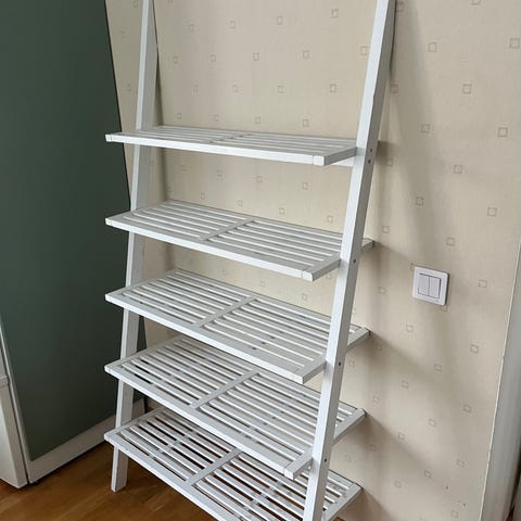 Mio steghylla i vit lackad yta med en höjd på 189 cm och ett djup på 33 cm. Maximal belastning är 20 kg. Hyllan väger 10,3 kg och är avsedd för förvaring och dekoration.