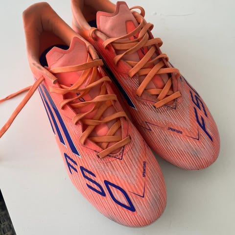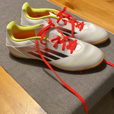 Köptes för liten storlek så de användes få gånger under våren så i mkt bra skick. Namnade med en klisterlapp.