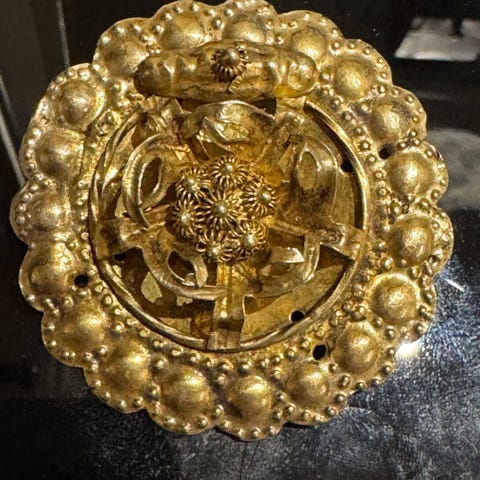 En mycket vacker antik handgjord svensk silverbrosch rikligt dekorerad blombukett, -blom- och bladmotiv med spiraldekor i relief.