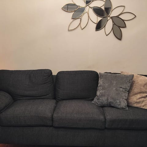 Sofforna har normalt slitage, det syns att de är använda, men är hela, rena och fullt funktionella.