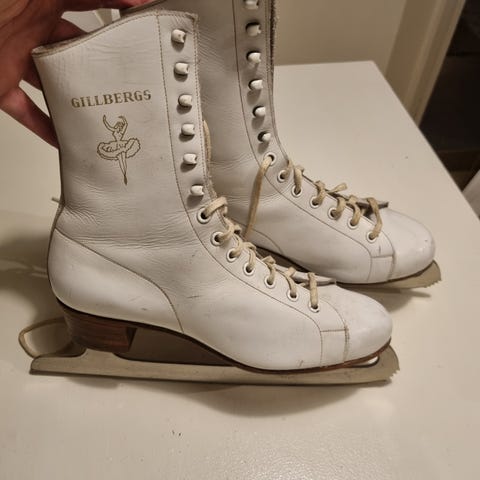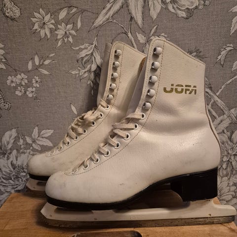 Säljer ett par riktigt fina konståkningsskridskor i vitt läder från Jofa i storlek 41. Tillverkade i Malung under 1960-talet.