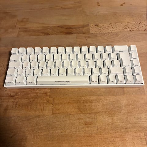 Glorious GMMK Mekaniskt tangentbord med Gateron Red switchar samt HyperX Pudding keycaps för bättre RGB-belysning.
