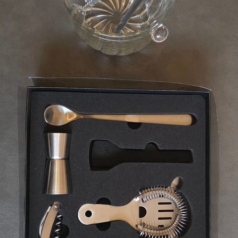 1 cocktailshaker i rostfritt stål (21 cm hög) och 1 jättepraktisk såstermos (3,5 dl).