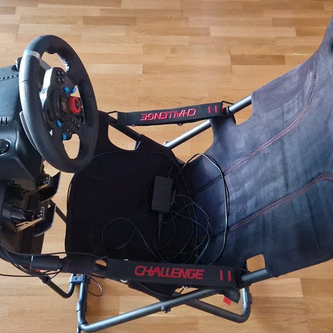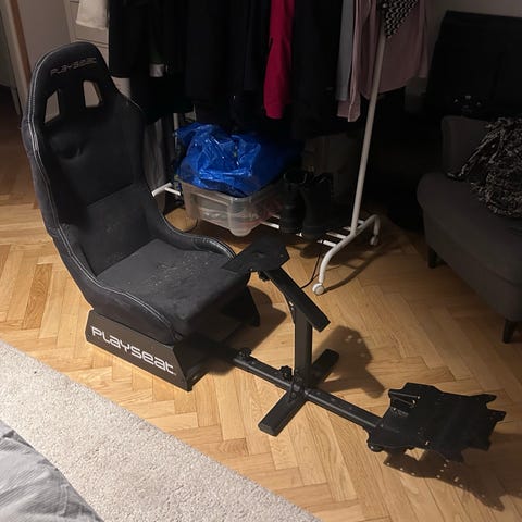 Komplett racing sim med playseat cockpit och full uppsättning Logitech G20 (inkl växelspak). Ratten har stark feedback och är snålt använd, med 3 pedaligt det plus sex växling spak.