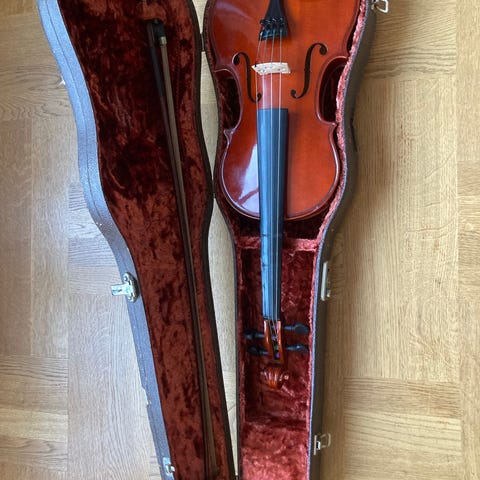 Säljer en 1/2-storlek fiol (barn), köpt hos Thomann. Mycket fint skick, nästan oanvänd.