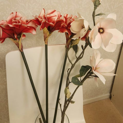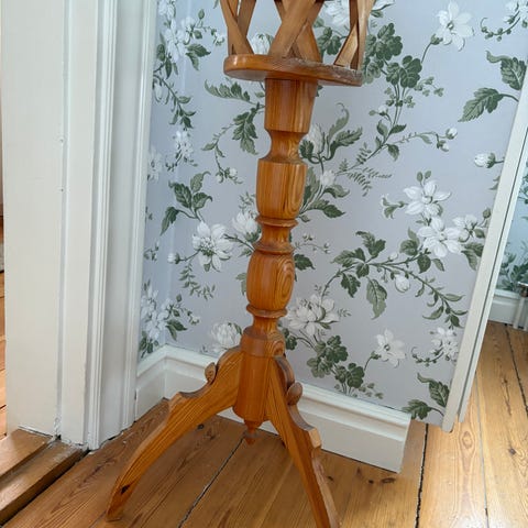 Prydnad att ha på väggen i form av en grep med torkade blommor på. Pris 250 kronor