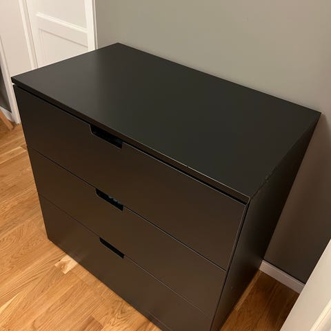 Nordli byrå med 6st lådor i mycket fint skick. Några lådor är kantstötta knappt synligt, går att fylla i med färg.