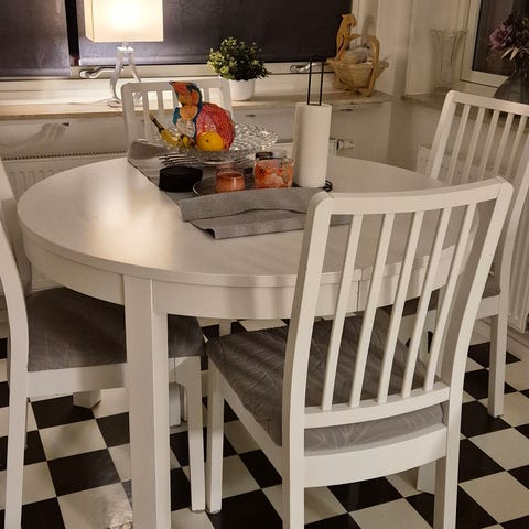 Matbord i massivt trä i svart färg med 8 matchande svarta stolar. Bordet har en rektangulär form och är anpassat för matsalsbruk. Stolarna är designade med en enkel och modern stil i svart material. Går att antingen ha den som 180cm lång eller fälla ut ena eller båda sidor. Vardera sida 50 cm så maxlängd 280cm. I använt skick . Inköpt på bredaryds möbler . Nypris då 18000kr säljes allt tillsammans i befintligt skick för 2000kr