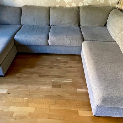 Hörnsoffa från Mio. Använd men i bra skick. Mått på djup är vid bredaste delen.
