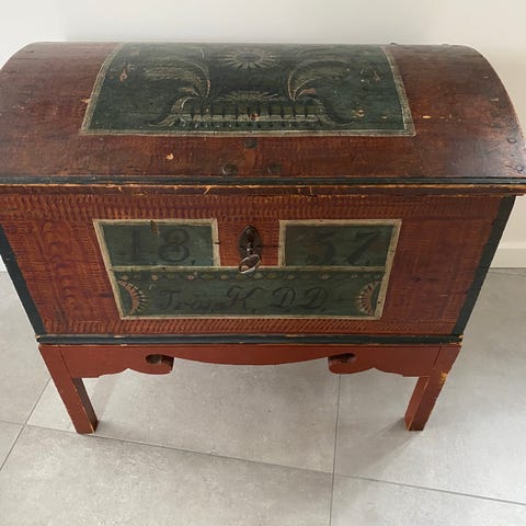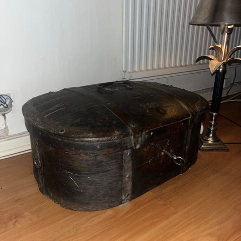 Antik rikt snidad kista – barockstil – sent 1700-tal/tidigt 1800-tal