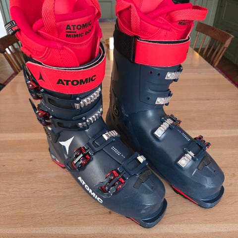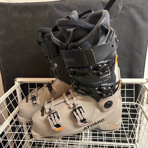 Pjäxor som är åkta i tre vintrar. De är synligt använda men inget som påverkar åkningen eller funktionen.