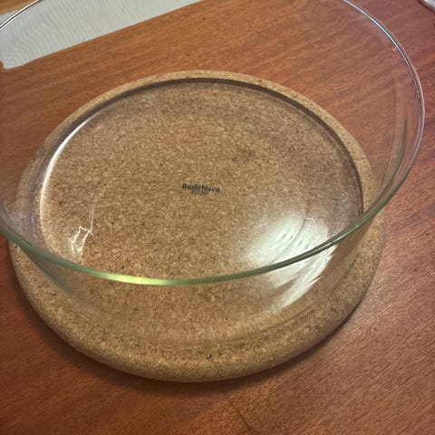 4 st. Boda Nova skål/suffléform i eldfast glas med korkunderlägg, design av Signe Persson Melin. Diameter 10,5 cm.