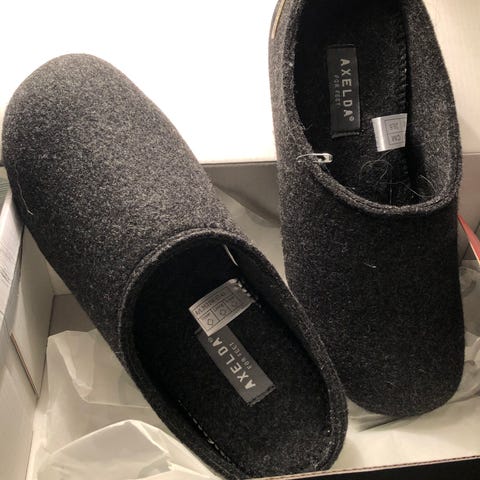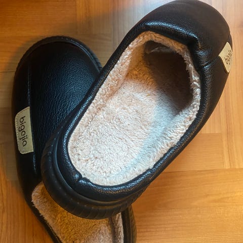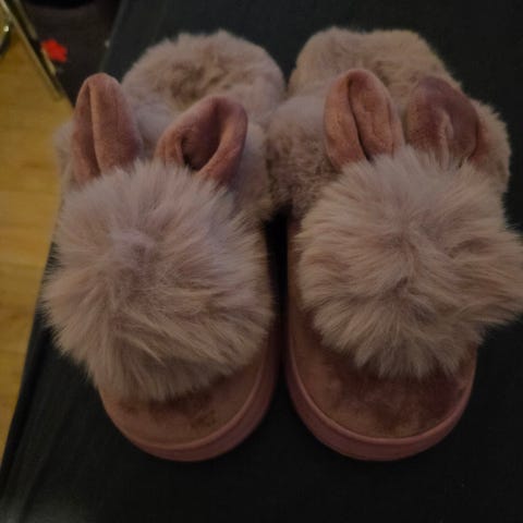 ONLY Tofflor i storlek 41, svarta. Tillverkade i mjukt material med halkfri sula. Designade för inomhusbruk och komfort.