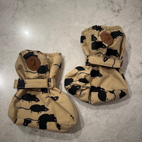 Tossor från Reima stl 2 (1-2 år) , sparsamt använda en säsong så i nästintill perfekt skick, men finns nån enstaka färgförändring på undersidan. Säljer ett par för 95 kr, eller två par för 140 kr.