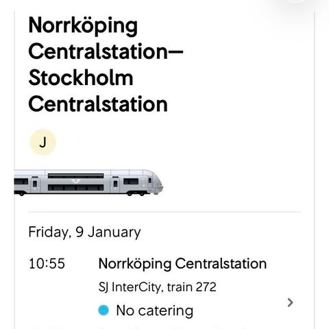 SJ InterCity tåg mellan Stockholm Centralstation och Insjön station.