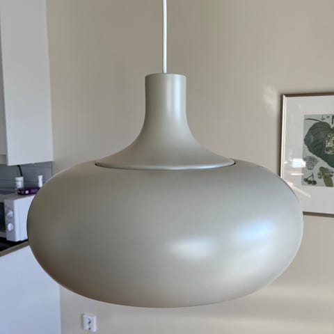 Taklampa i silver, några bucklor.
