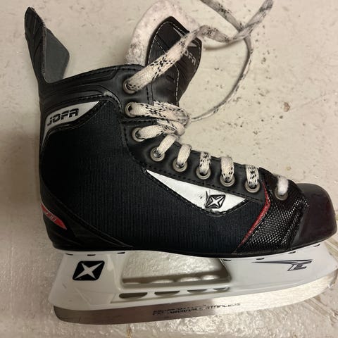 Skridskor i olika storlekar, hjälmar och trunk till salu