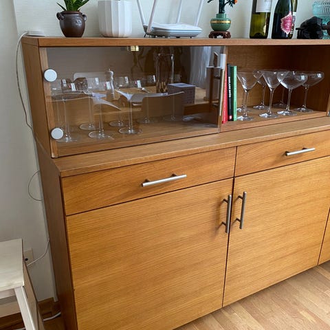 Mycket fint vitrinskåp med glashyllor i övre delen.