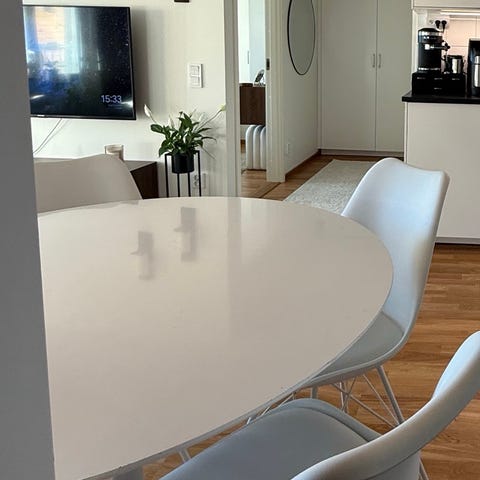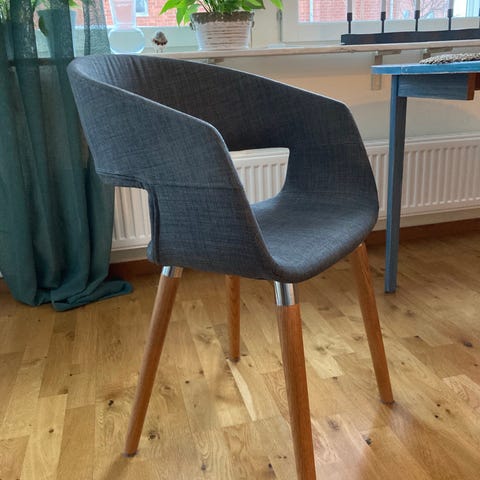 Stolarna är köpta i augusti och är i nyskick – mycket sparsamt använda och utan skador. Stabil konstruktion och bekväm vadderad sits.