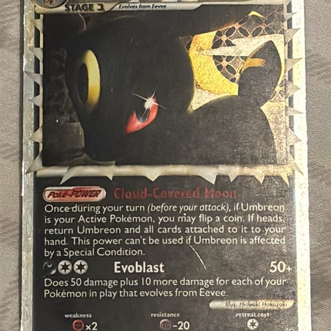 Pokemonkort från serien Triumphant. Kortet är Darkrai & Cresselia LEGEND #99.
