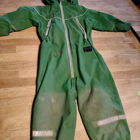 Fodrad skaloverall med avtagbart fleecefoder från Polarn O. Pyret stl 116. Fothällorna är hela, likaså fodret. Det finns 5 lagningar (fanns revor) med vattentäta lagningslappar, varav 2 gjorda av PoP Repairs (Polarns egen lagningstjänst). Overallen är redo att hålla fler barn torra och varma. Overallen kan användas från höst till vår genom att ta av fodret vid varmare väder.