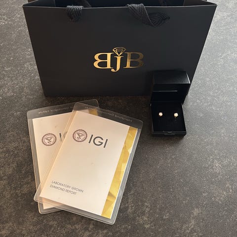 Söta små diamantörhängen från Albrekts Guld säljes. Köptes nya som morgongåva till min fru i våras (23/5-25) men har tyvärr inte kommit till användning speciellt mycket.