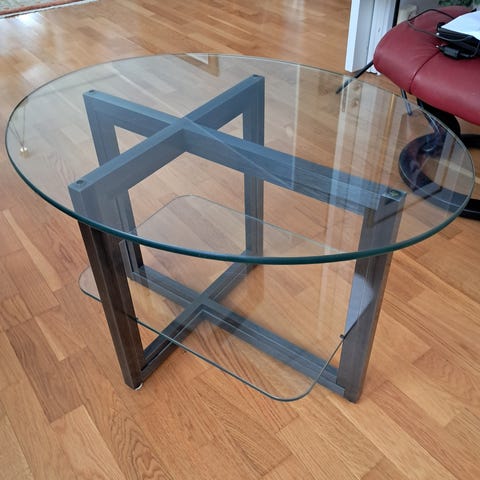 Ett fint soffbord i glas köpt från R.O.O.M inrednings butik