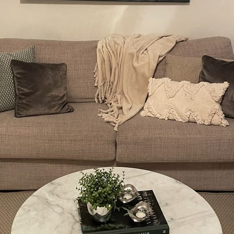 Jag säljer soffan eftersom vi har flyttat till en större bostad och köpt en större soffa.