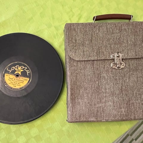 En gammal fungerande vevgrammofon säljes tillsammans med 23 stenkakor; svenska schlagers , Charles Norman, Glenn Miller Benny Goodman mfl