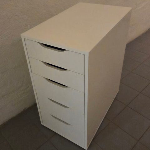 Robust hurts från Ikea i ek och som står på hjul. Slänger med en fördelare till övre lådan med.
