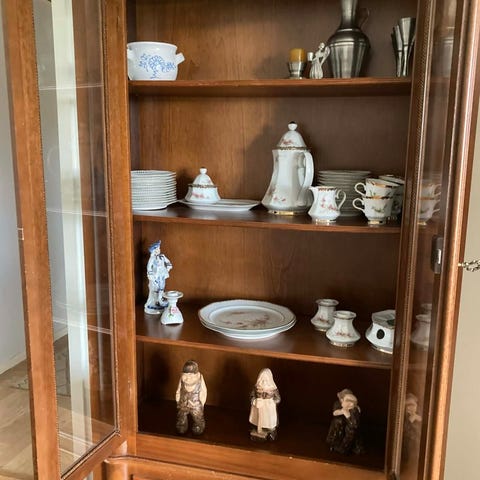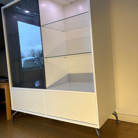 Gediget och Fint vitrinskåp med lådor.
