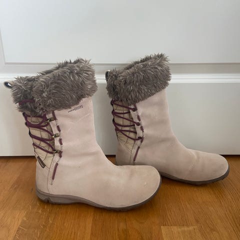 ECCO vinterskor i storlek 38, brun färg, med foder av mjukt material för värme. Skorna har snörning och är avsedda för vinterbruk.