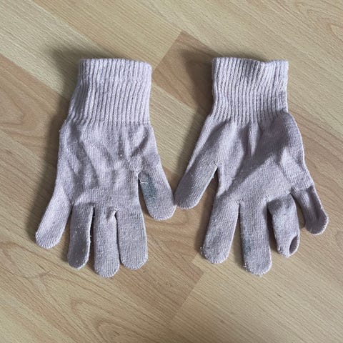 Ett par härliga, fluffiga, vita tumvantar i fuskpäls.