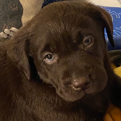 Vi söker ett nytt hem till vår fina labrador-tik på 11 månader. Hon är en snäll, trygg och lydig unghund, som älskar människor och att umgås med andra hundar, gillar att vara ute och tycker mycket om att vara nära. Lättlärd och koppelvan.