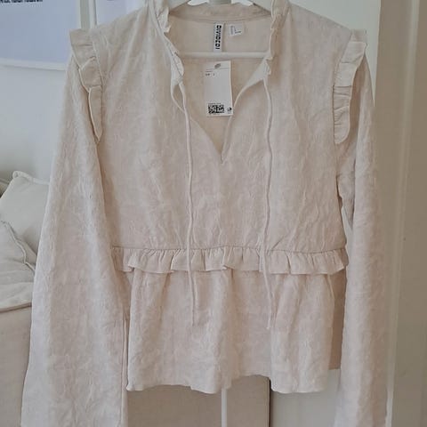 En svart blus med fina detaljer med bälte runt midjan. Den har även shoulder puff och den är från New Yorker i storlek L.