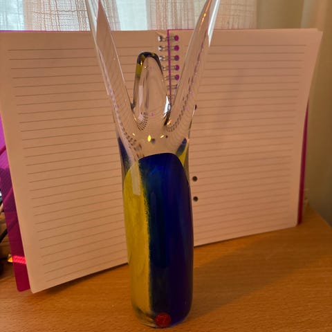 Glas Cellofan glas 4-pack i färgerna ceriserosa, grönt, gult och lila. Tillverkade i glas med en unik formgivning av Ebba von Wachenfeldt.
