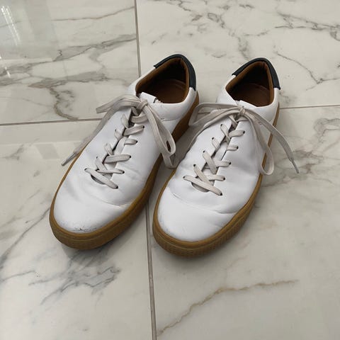 Ett par vita sneakers från H&M. Skorna har en svart detalj baktill på hälen.