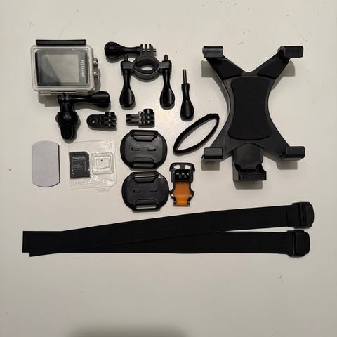 GoPro HERO4 i fint skick. Ett batteri medföljer samt ett fäste man spänner fast på bröstet.
