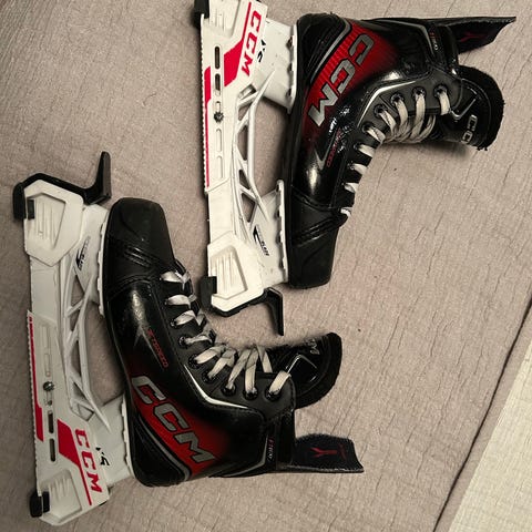 CCM Ishockeyskridskor i svart och röd färg. FT 6 PRO strl 3,5 med 2 par skenor
