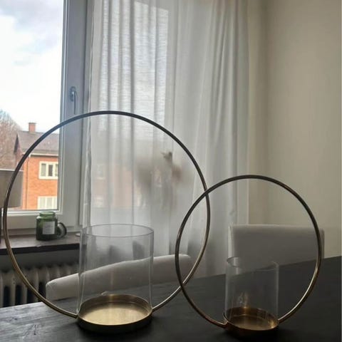 H&M Home ljusstakar i olika storlekar, två i svart metall. Den röda kan vara från annat märke, den är i rött glas. Ljusstakarna har en enkel och modern design och kan användas för att hålla vanliga ljus. Passar för inomhusbruk som dekoration eller belysning.