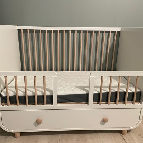 IKEA MYLLRA Grön Spjälsäng med låda, madrass och sängkläder