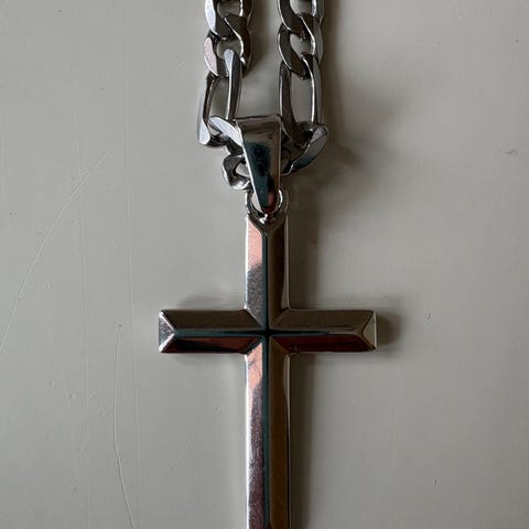 Ett stilrent armband i svart och silverfärg. Armbandet har en dekorativ korsdesign i mitten. Perfekt accessoar för att komplettera din outfit. Armbandet är tillverkat av rostfritt stål och gummi.