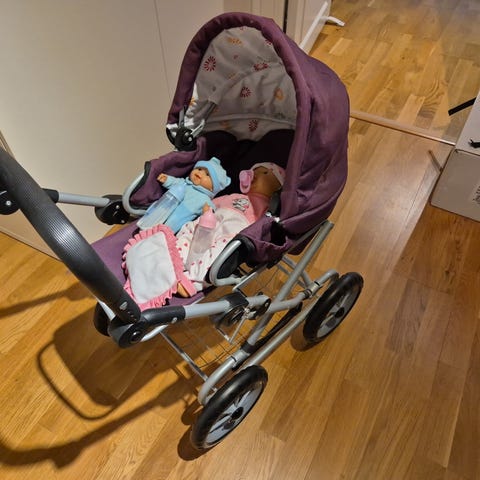 Dockvagn med ställbart handtag. Ngt märke på skynket, övrigt i gott skick.