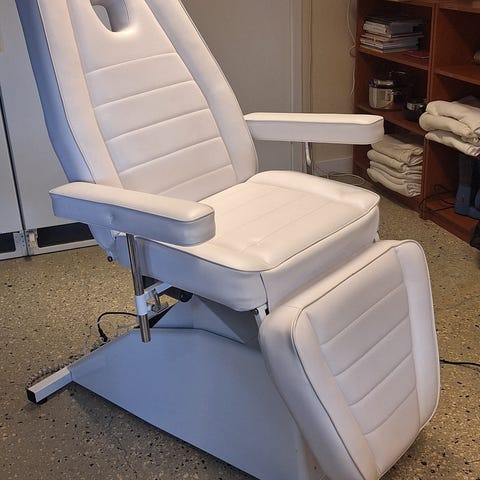 Manuell fotvårdsstol, höj och sänkbar, tiltande ryggstöd och justerbara benstöd